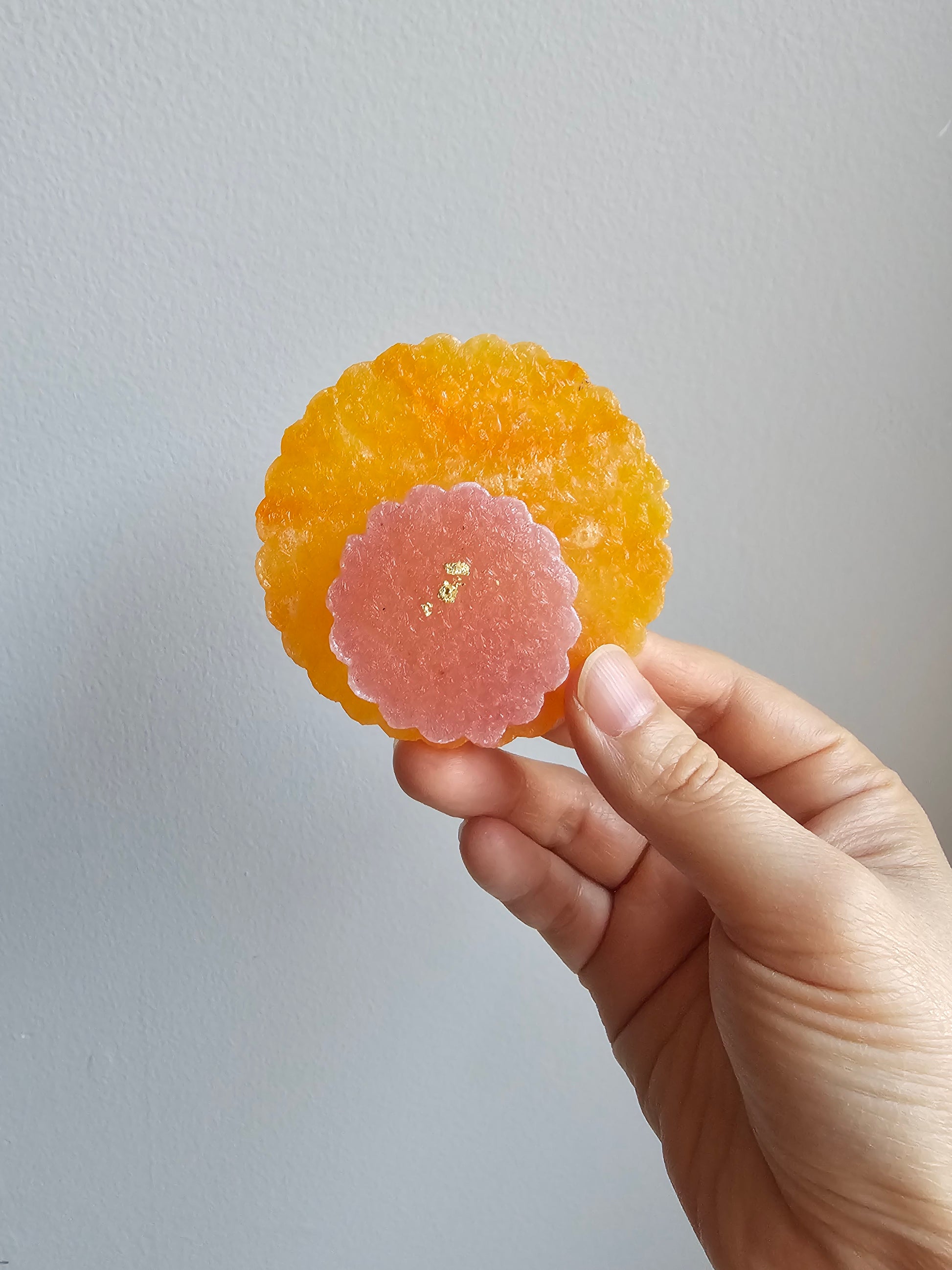 Beautifully handcrafted sweet Treat. It's crunchy outside and jelly inside. Kohakutou is a Japanese dessert made with Agar agar, sugar and flavor. They are not only gorgeous but also famous for the unique texture. It is crunchy outside and soft jelly inside. (aka. ASMR Candy)